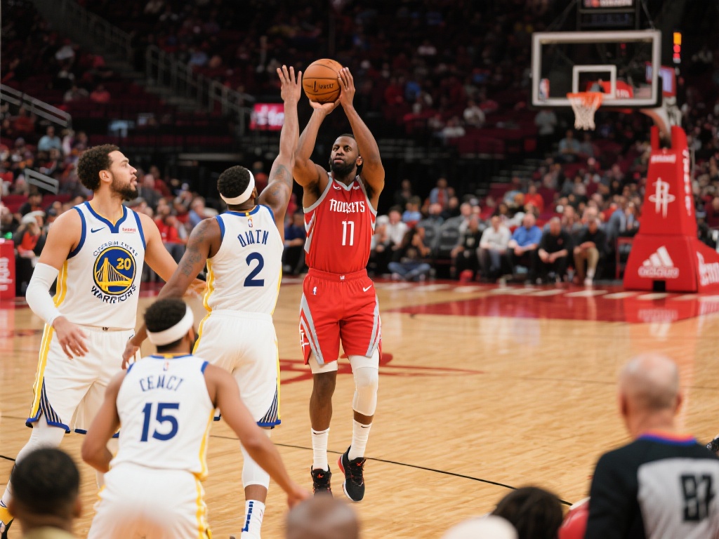 火箭上半场三分失准,勇士外线制胜领先两位数